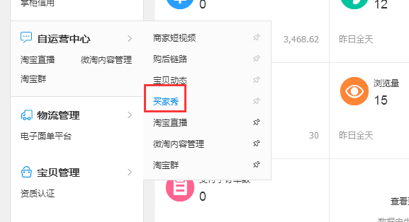 首先还是进入买家秀后台,然后点击全店晒物站,这里就是店铺晒单的运营区域了。